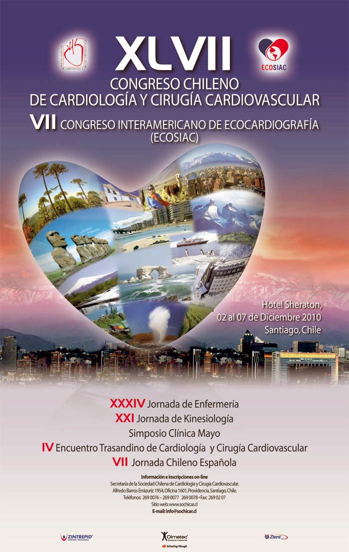 En nombre de la Sociedad Chilena de Cardiología y Cirugía Cardiovascular, tenemos el agrado de invitar al VII Congreso Interamericano de Ecocardiografia y al XLVII Congreso Chileno de Cardiología, que tendrá lugar los días jueves 02 al martes 07 de diciembre en el Sheraton Santiago Hotel and Convention Center.